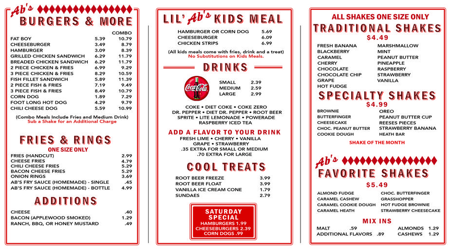Fat Boy 329 Cheeseburger 189. ABS DRIVE-IN - 32 Photos 78 Reviews - Burgers - 4591 S 5600 W West Valley City UT - Restaurant Reviews - Phone Number - Menu.